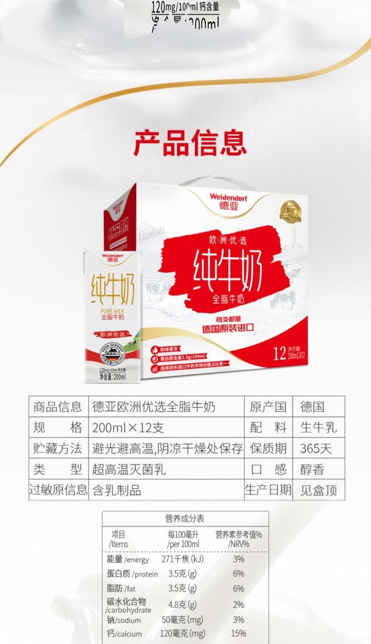 德亞歐洲優(yōu)選全脂牛奶200ml*12(禮盒)